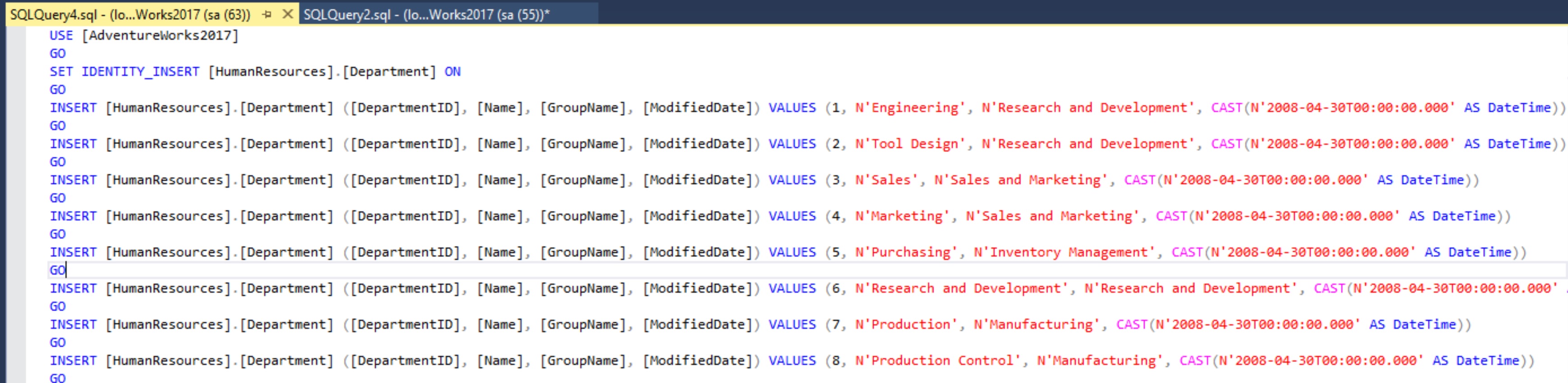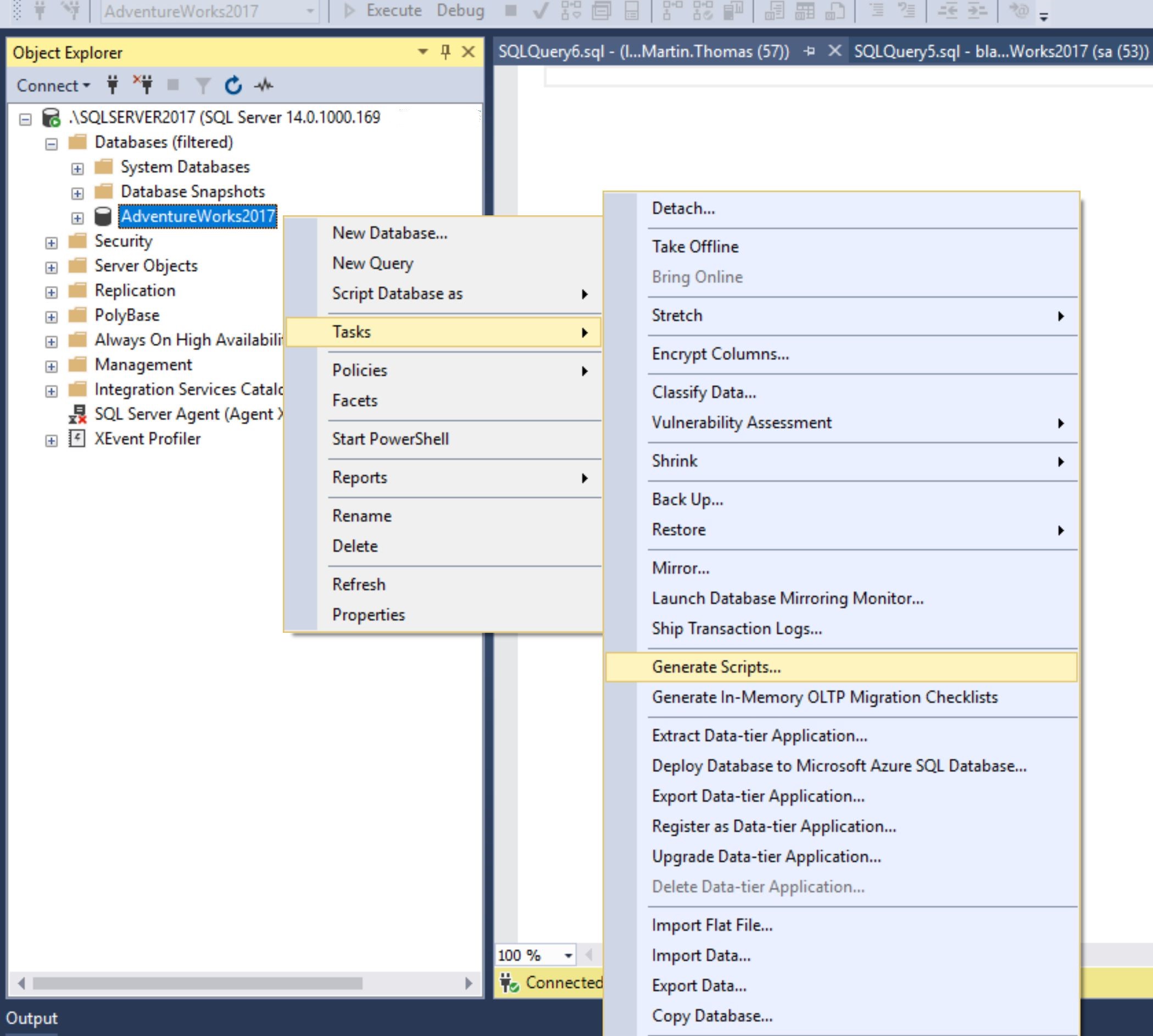 SSMS makes it easier to do all the data and definition changes. However, it is important to script the changes so that these can be included in the release process. Therefore, SSMS offers different ways to generate scripts depending on the type of change. One of the main options is “Generate Scripts” which can be used to script the creation of multiple database objects. Lets see how we can create a data insertion script for one or more tables.