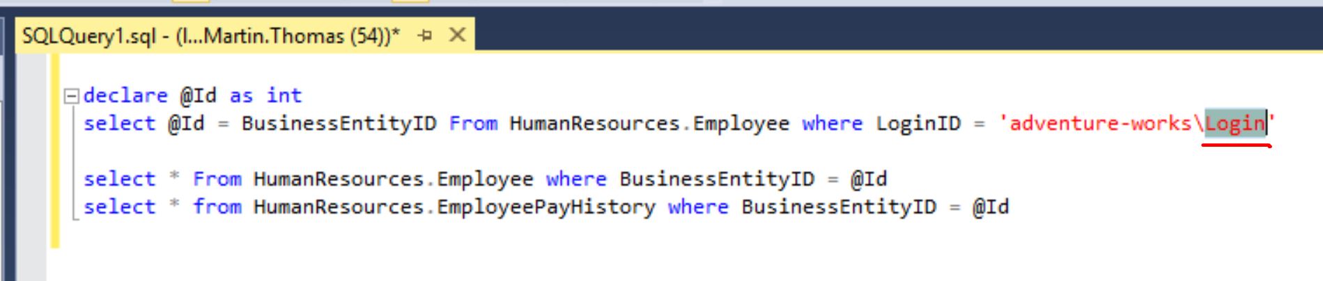 alter table HumanResources.Employee alter column LoginID nvarchar(256) MASKED with (function = 'default()')
