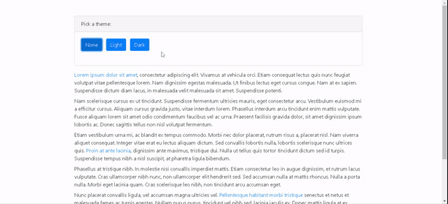 Now, we just need to have the code to apply the right CSS class on ‘html’ element when user selects a particular theme, as shown below.